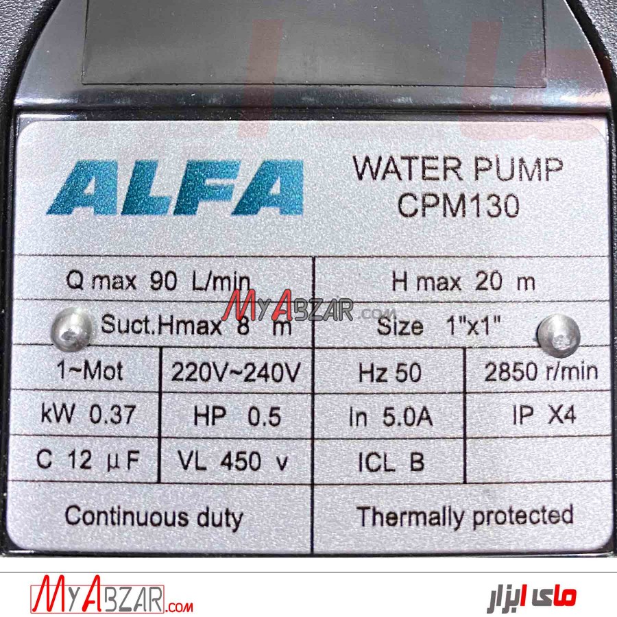 کد بندی موتور پمپ آب نیم اسب بشقابی الفا مدل CPM 130